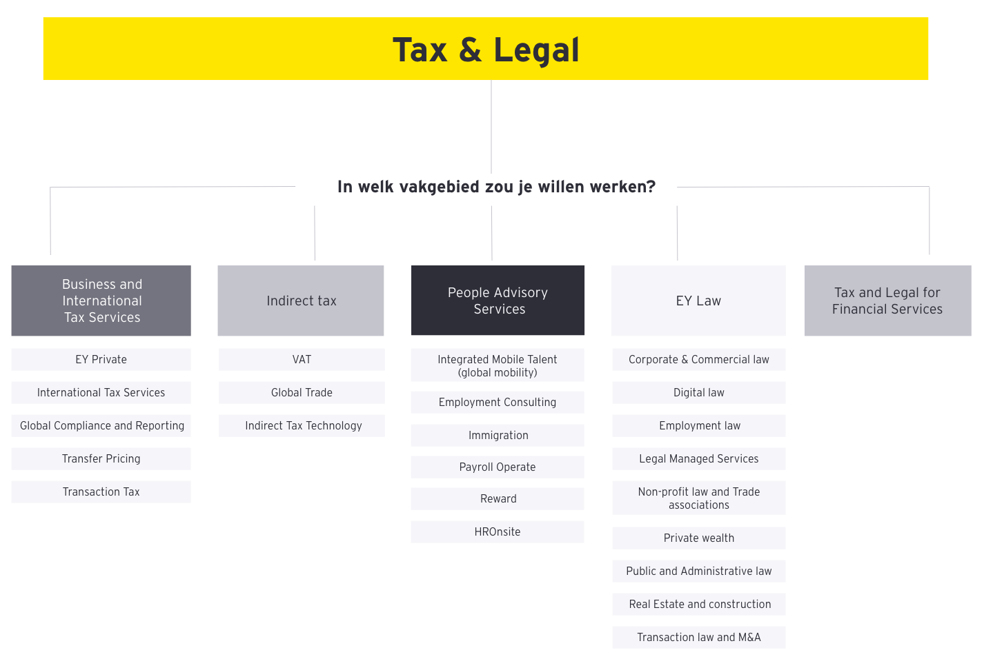 Wil je deel uitmaken van een wereldwijd juridisch netwerk met meer dan 3.500 juridische professionals in 90 landen? Bij EY Law kan dat. Als lid van het Belgische team bied je juridische diensten aan nationale en internationale klanten in diverse domeinen, van ondernemingsrecht tot handelsrecht.